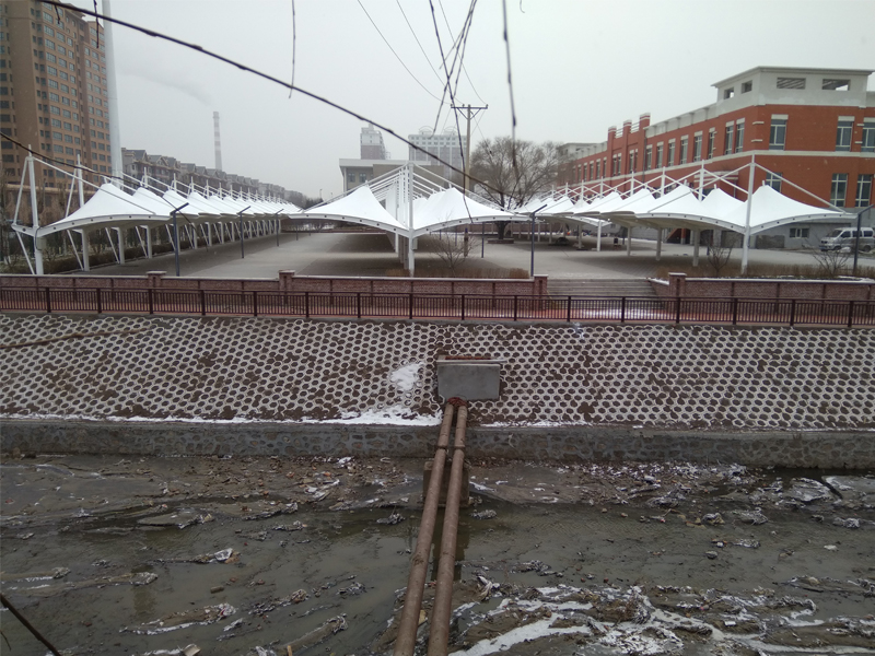 膜結構車棚工程在整體安裝中您可以看到大框的一個骨架,主鋼架結構,膜的安裝。但在專業的膜結構公司其實我們在設計的過程中就會體現出很多的細節問題,包括在每個工程地點不同其風荷載雪荷載的參數是不同的,因此實際在設計膜結構車棚整體結構的角度都會做出相應的調整;還有在工廠制作膜結構車棚的鋼結構部分時,除了柱結構其中還有很多鏈接件的加工與制作,小件是用來連接柱結構與主結構之間的“橋梁”它不僅美化了膜結構的造型,還加強了膜結構車棚的受力;再就是膜材的安裝部分,膜結構車棚又叫張拉膜車棚,顧名思義膜是有張拉性的,有的非正規廠家安裝的膜結構車棚用了一年左右就會出現大量的積水積雪現象,其主要的原因就是在安裝的時候根本就沒有拉緊,再就是膜結構車棚主結構也沒有安裝好整體結構與圖紙產生了偏差。想要把膜結構車棚膜部分效果好耐用其實還得需要現場的施工人員必須要有多年拉膜的豐富經驗的。