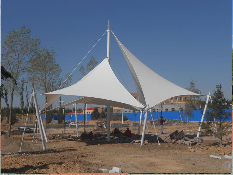 景觀膜結(jié)構(gòu)又稱張拉膜景觀,主要通過膜結(jié)構(gòu)的張拉式 呈現(xiàn)出唯美的結(jié)構(gòu)特征;膜材料是指聚酯纖維基布或PVDF、PVF、PTFE等不同的表面涂層,配以優(yōu)質(zhì)的PVC組成的具有穩(wěn)定的形態(tài),并可承受一定載荷的建筑紡織品。它的壽命因不同的表面涂層而異,一般可達(dá)成10-20年;其外觀整潔大方,自潔性強(qiáng)。主要應(yīng)用于各大公園,世博園,和一些廣場,商場等場所。
