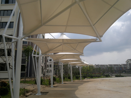 呼和浩特景觀膜結(jié)構(gòu) 景觀膜結(jié)構(gòu)又稱張拉膜景觀,主要通過膜結(jié)構(gòu)的張拉式 呈現(xiàn)出唯美的結(jié)構(gòu)特征;膜材料是指聚酯纖維基布或PVDF、PVF、PTFE等不同的表面涂層,配以優(yōu)質(zhì)的PVC組成的具有穩(wěn)定的形態(tài),并可承受一定載荷的建筑紡織品。它的壽命因不同的表面涂層而異,一般可達成10-20年;其外觀整潔大方,自潔性強。主要應用于各大公園,世博園,和一些廣場,商場等場所。