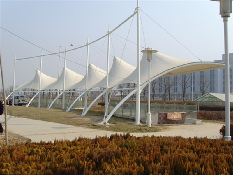 膜結構車棚是膜材料是指聚酯纖維基布或PVDF、PVF、PTFE等不同的表面涂層,配以優質的PVC組成的具有穩定的形態, 并可承受一定載荷的建筑紡織品。它的壽命因不同的表面涂層而異,一般可達成10-20年膜結構車棚是當今比較流行應用的一種車棚,膜材料是指聚酯纖維基布或PVDF、PVF、PTFE等不同的表面涂層,配以優質的PVC組成的具有穩定的形態,并可承受一定載荷的建筑紡織品。它的壽命因不同的表面涂層而異,一般可達成10-20年;其外觀整潔大方,自潔性強。主要應用于各大商場,工廠,政府機關,學校等場所。