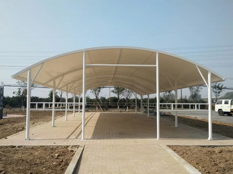 膜結構車棚是膜材料是指聚酯纖維基布或PVDF、PVF、PTFE等不同的表面涂層,配以優質的PVC組成的具有穩定的形態,并可承受一定載荷的建筑紡織品。它的壽命因不同的表面涂層而異,一般可達成10-20年膜結構車棚是當今比較流行應用的一種車棚,膜材料是指聚酯纖維基布或PVDF、PVF、PTFE等不同的表面涂層,配以優質的PVC組成的具有穩定的形態,并可承受一定載荷的建筑紡織品。它的壽命因不同的表面涂層而異,一般可達成10-20年;其外觀整潔大方,自潔性強。主要應用于各大商場,工廠,政府機關,學校等場所。